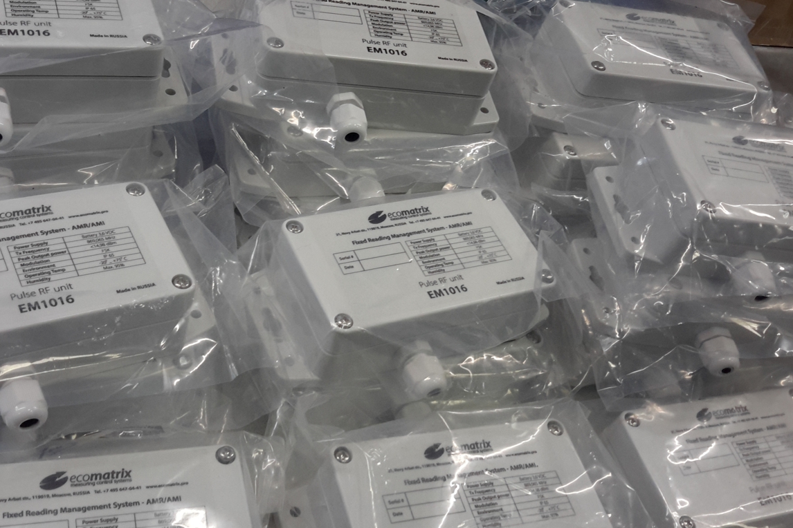 Die EcoMatrix-Plattform umfasst verschiedene Sensoren, Zählergeräte sowie Steuer- und Kontrollmodule, die an den Objekten installiert und mit Funkübertragungsmodulen (RF-Module) zur Datenübertragung verbunden sind: