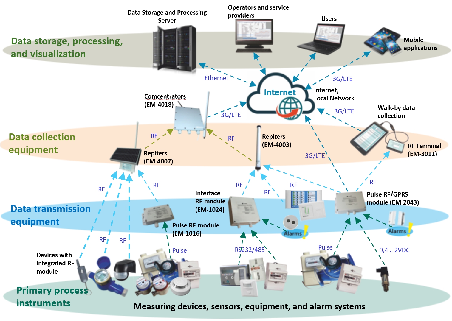 A fully wireless system based on the EcoMatrix platform, featuring wireless meter reading technology (for water, heat, electricity, and gas) and automated data processing